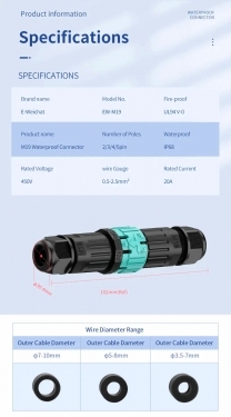 Σύνδεσμος καλωδίων, Αρσενικός - θηλυκός Αδιάβροχος, 3 πόλων/450V/20A/2,5mm2 /IP68/ Αρς.: 55 x 22,7mm / Θήλ.:55 x 23,9mm. Χρήση σε εξωτερικό φωτισμό, φώτα κολύμβησης, φώτα κήπου.