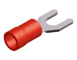 Ακροδέκτης δίχαλος με μόνωση κόκκινος 1mm πάχος καλωδίου 5.3mm πλάτος.(τιμή τεμαχίου).