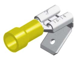 Ακροδέκτης συρταρωτός θηλυκός με μόνωση κίτρινος & κλέφτη αρσενικό 6.4mm διάμετρος (καρε) καλωδίου 4mm² (τιμή τεμαχίου).