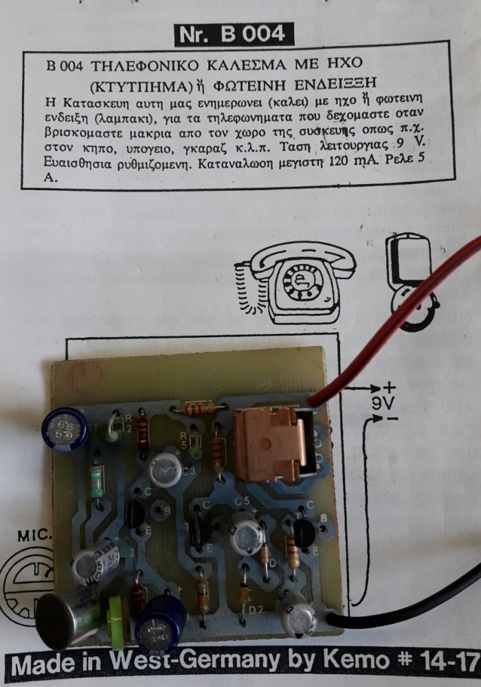 Τηλεφωνικό κάλεσμα με ήχο ή φωνητική ένδειξη, Kemo 14-178.