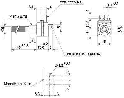 Ποτενσιόμετρο γραμμικό με διακόπτη 100Ω.