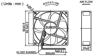 Ανεμιστήρας (blower) με ρουλεμάν 92x92x25mm 2w 0.165a 12vdc Sunon.