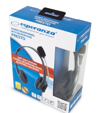 Ακουστικά stereo με μικρόφωνο και με κομψό σχεδιασμό και volume control Esperanza.