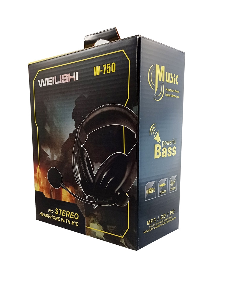 Ακουστικά κεφαλής με μικρόφωνο, gaming, καλώδιο 2 jack 3.5mm stereo (μικρόφωνο και ακουστικό), 210cm, Weilshi.