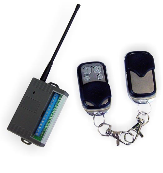 Ασύρματος πομποδέκτης 4 ανεξάρτητων καναλιών με 2 τηλεχειριστήρια. Eμβέλεια τηλεχειρισμού 100Μ(max) σε ανοιχτό χώρο. Tροφοδοσία 12/24V DC/AC. Συχνότητα εκπομπής 433.92 MHz